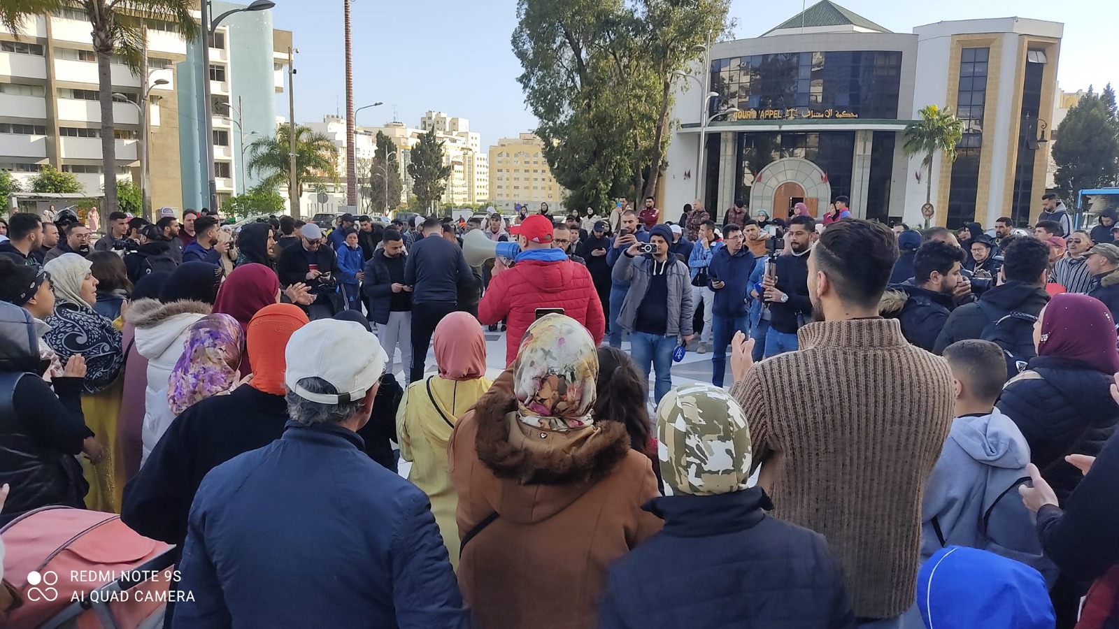 وحج عشرات من المحتجين؛ الى فضاء ساحة الامم؛ بوسط المدينة؛ للمشاركة في هذه الوقفة.